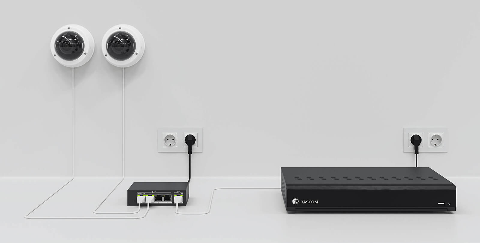 Bij de installatie van een bekabeld camerasysteem worden camera's doorgaans rechtstreeks op de recorder aangesloten. Voor grotere systemen kan het gebruik van een PoE-switch echter efficiënter zijn, vooral wanneer er een grote afstand is tussen een groep camera's en de recorder. U sluit dan meerdere camera's aan op de PoE-switch en hoeft vervolgens slechts één kabel naar de recorder te trekken.