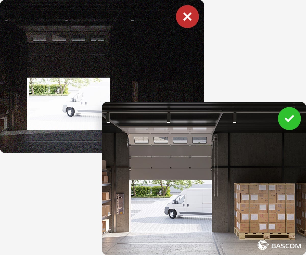 Zodra het donker wordt, schakelen Bascom PLUS-camera’s automatisch over op hun nachtzichtmodus, die gebruikmaakt van geavanceerde infraroodtechnologie. Dit stelt ze in staat om zelfs in volledige duisternis – waarin het menselijk oog niets kan waarnemen – helder zicht te behouden, tot op afstanden van wel 50 meter.